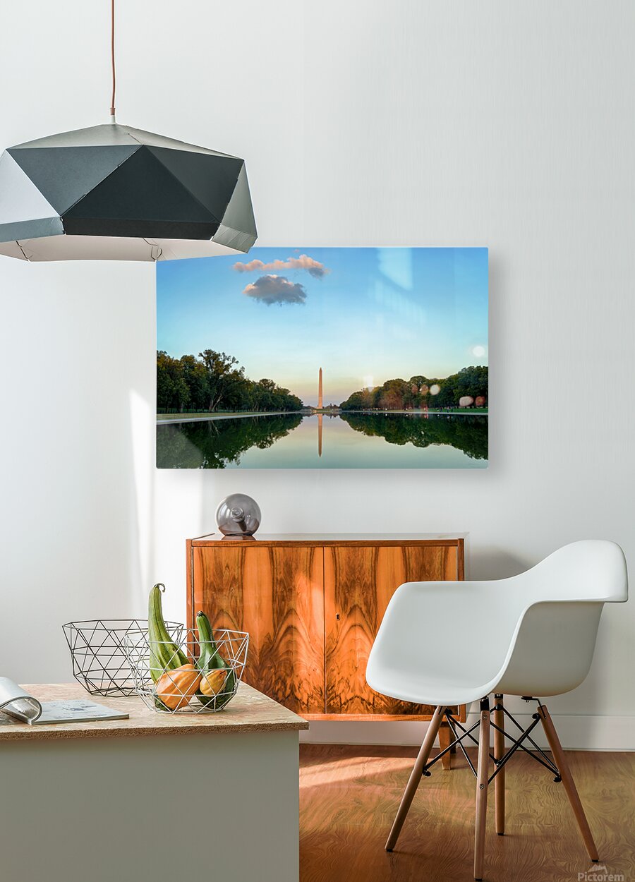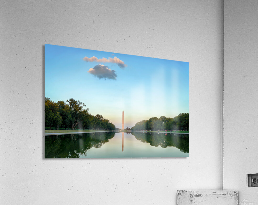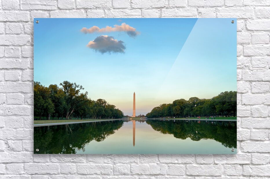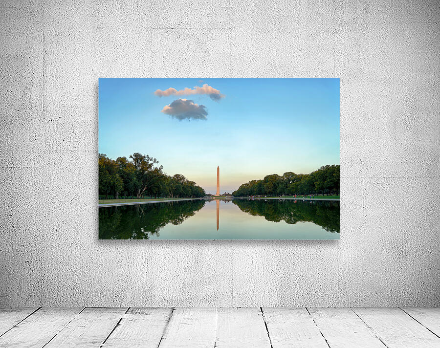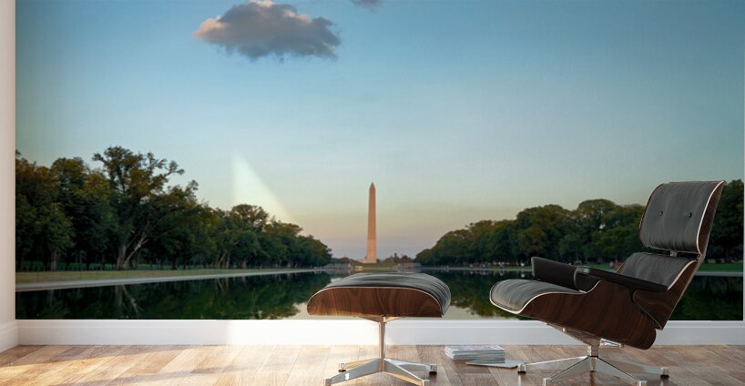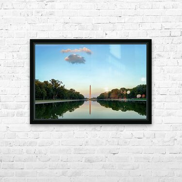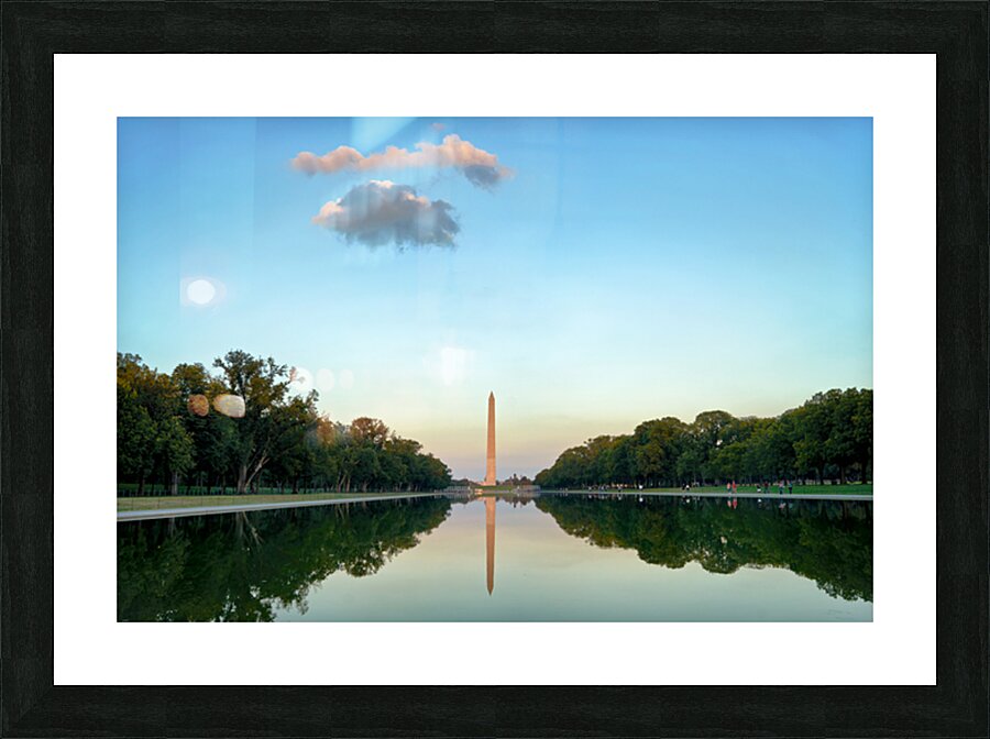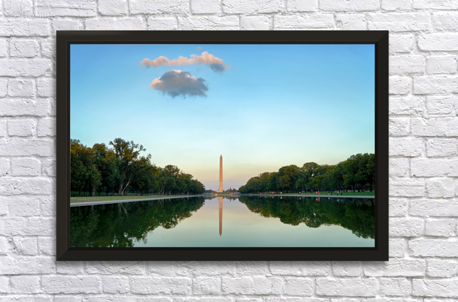 "Washington Monument at sunset in Lincoln Pool" in a framed print.
