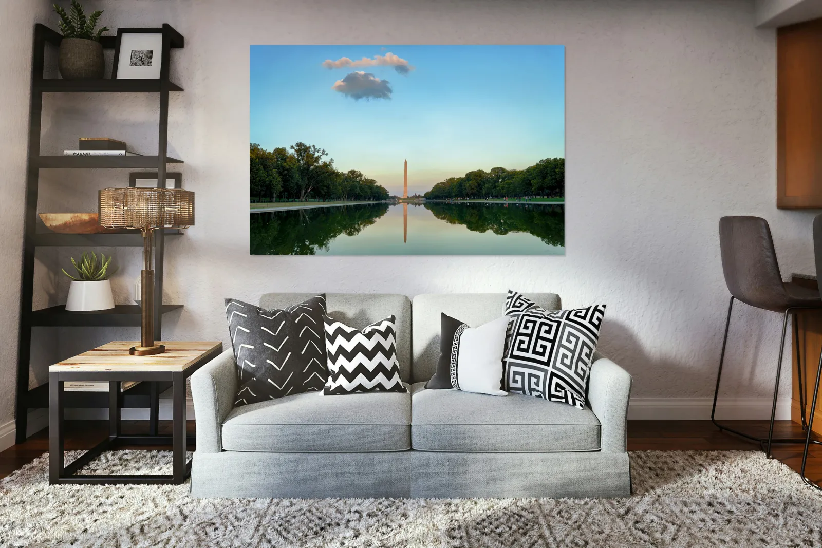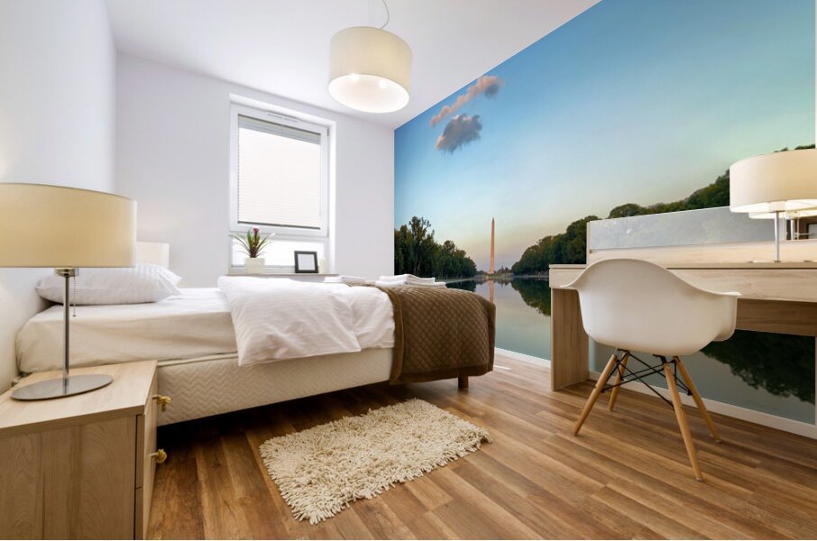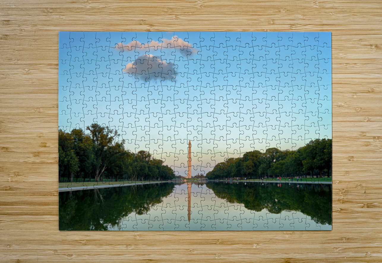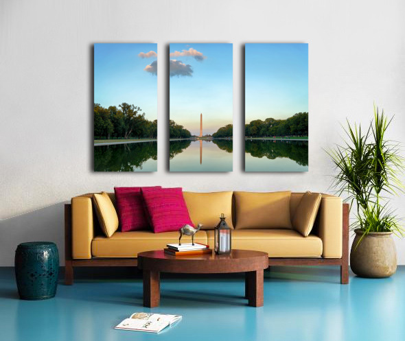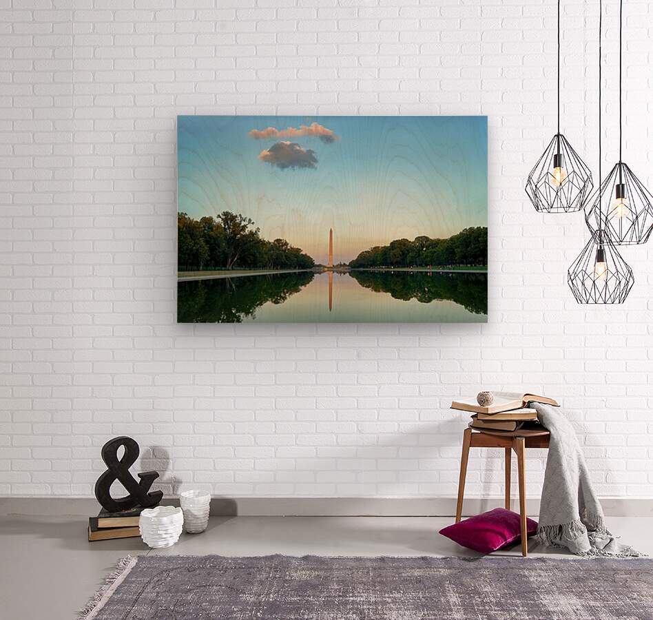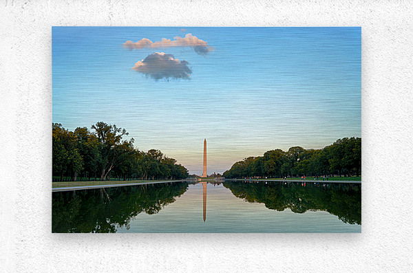"Washington Monument at sunset in Lincoln Pool" in a framed print.
