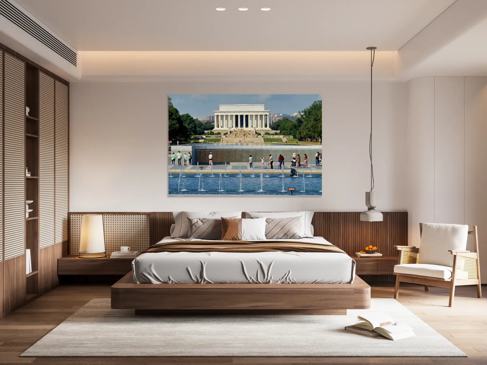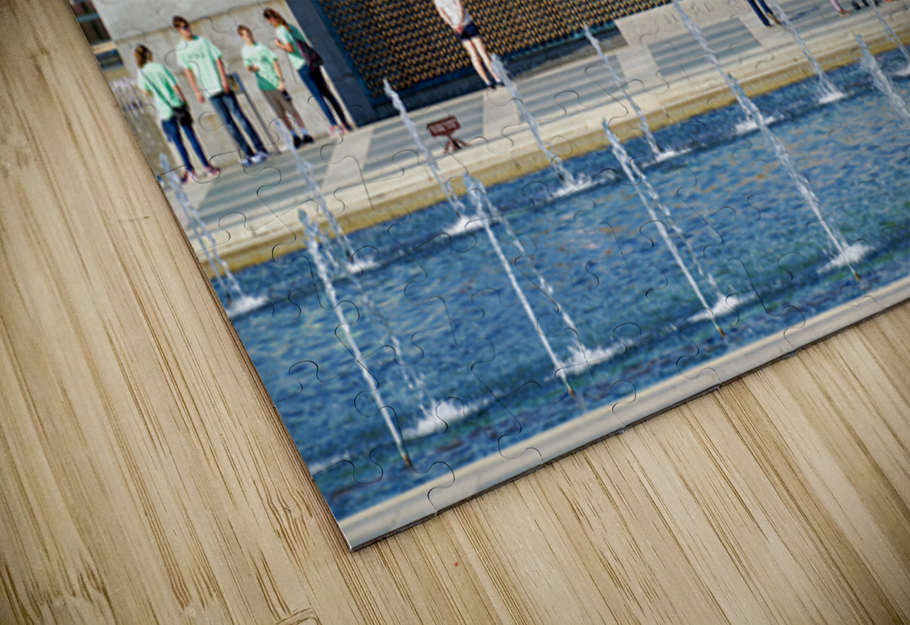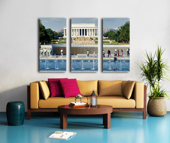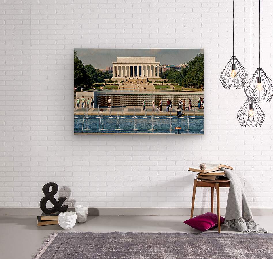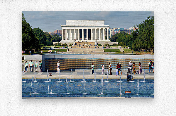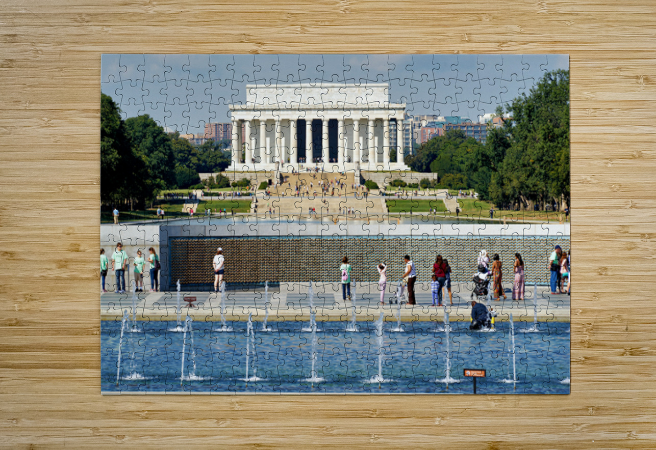 "Visitors walk around the National World War II Memorial" in a framed print.
