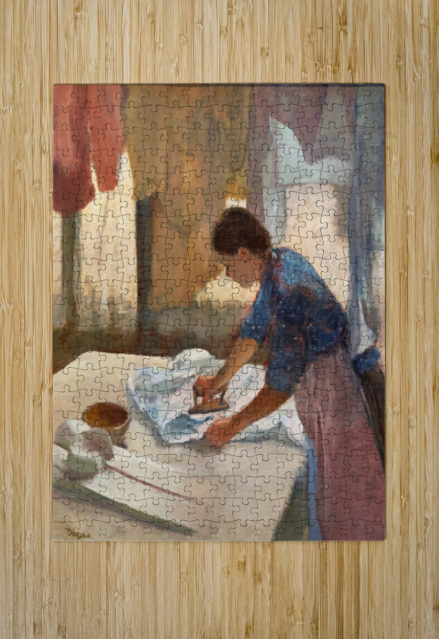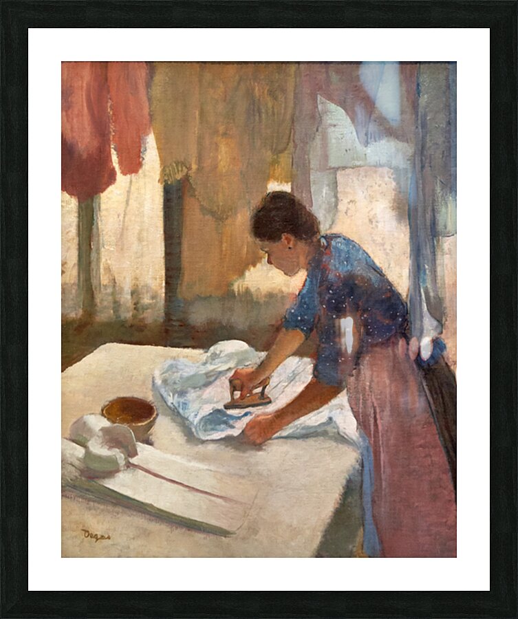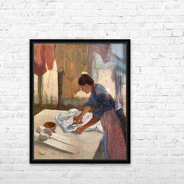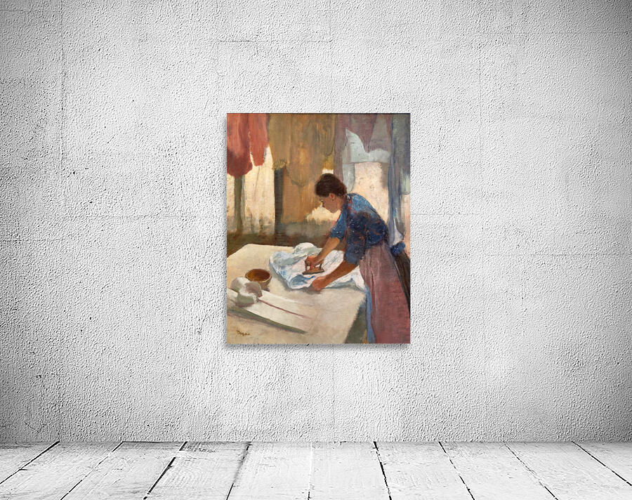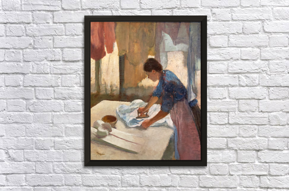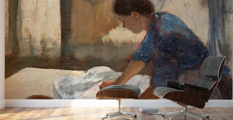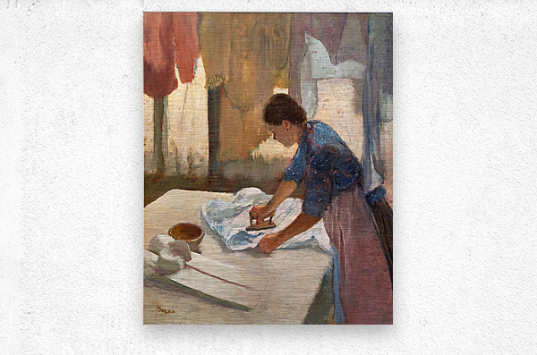 Degas. A woman is ironing clothes in a home setting. She focuses on her task with a look of concentration.