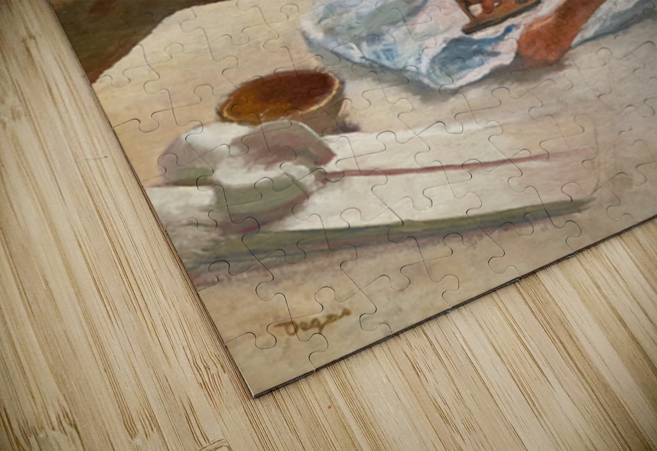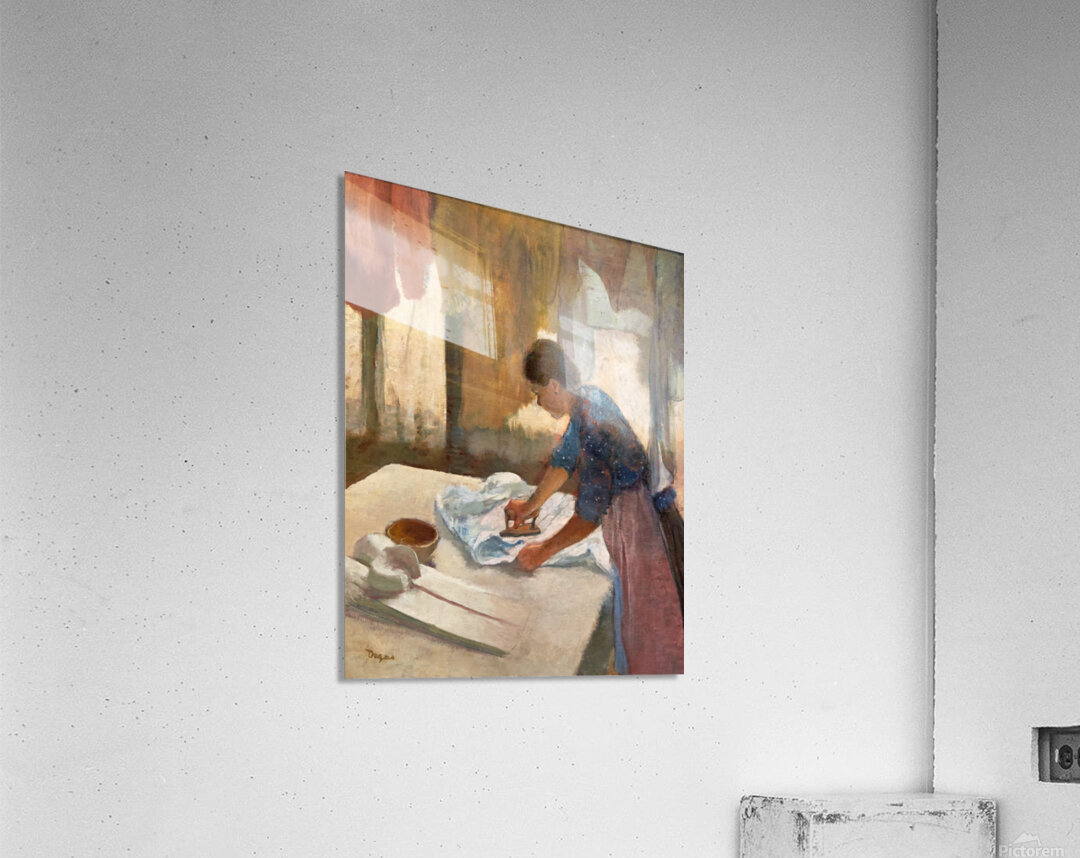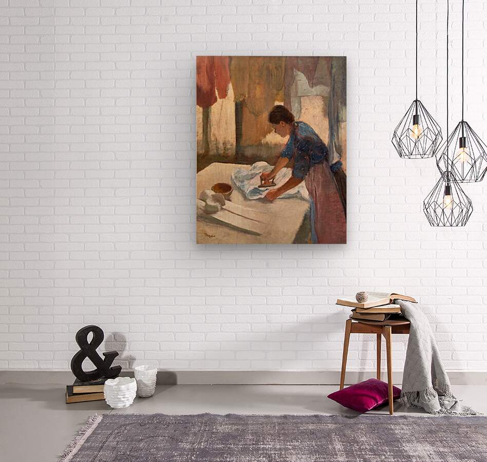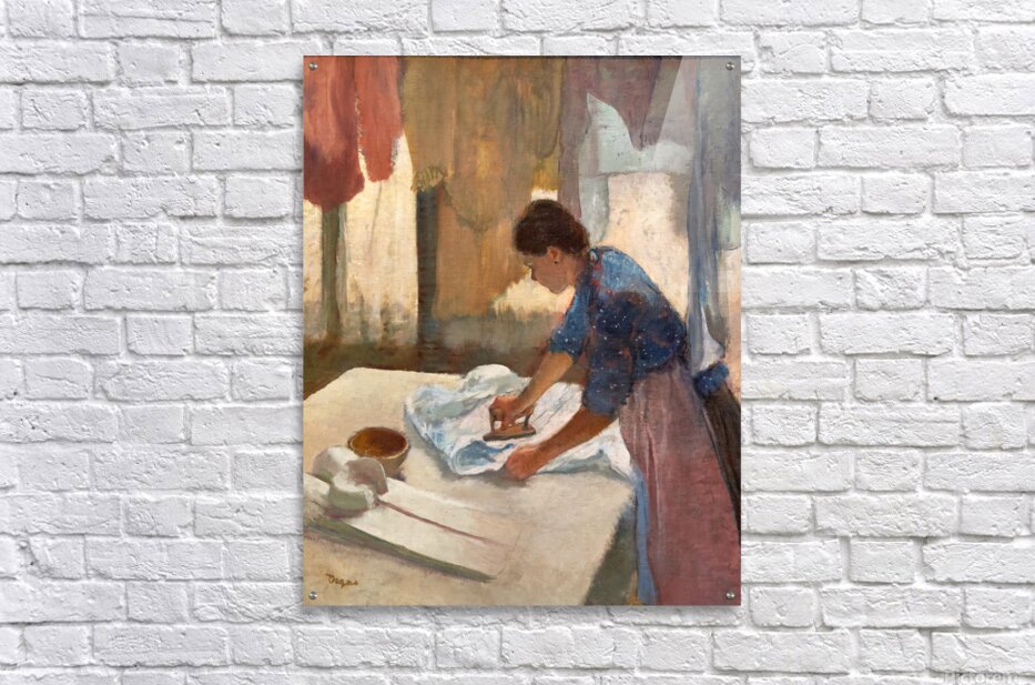 Degas. A woman is ironing clothes in a home setting. She focuses on her task with a look of concentration.