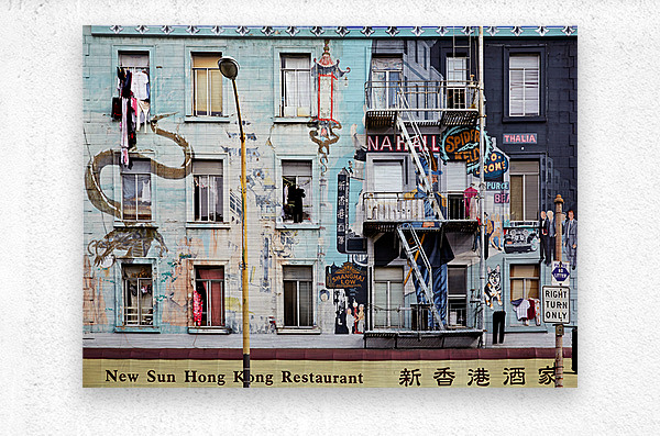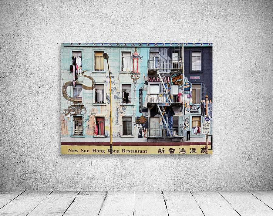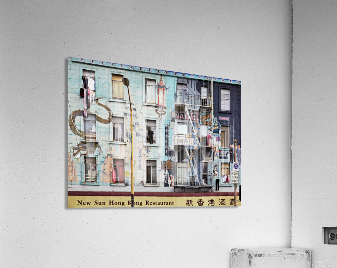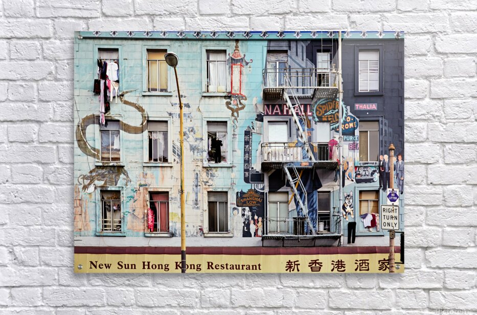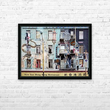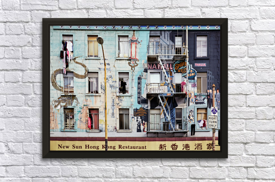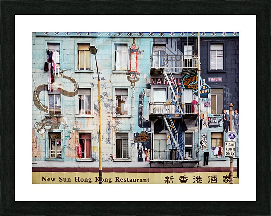 "Chinatowns vibrant murals and buildings" in a framed print.