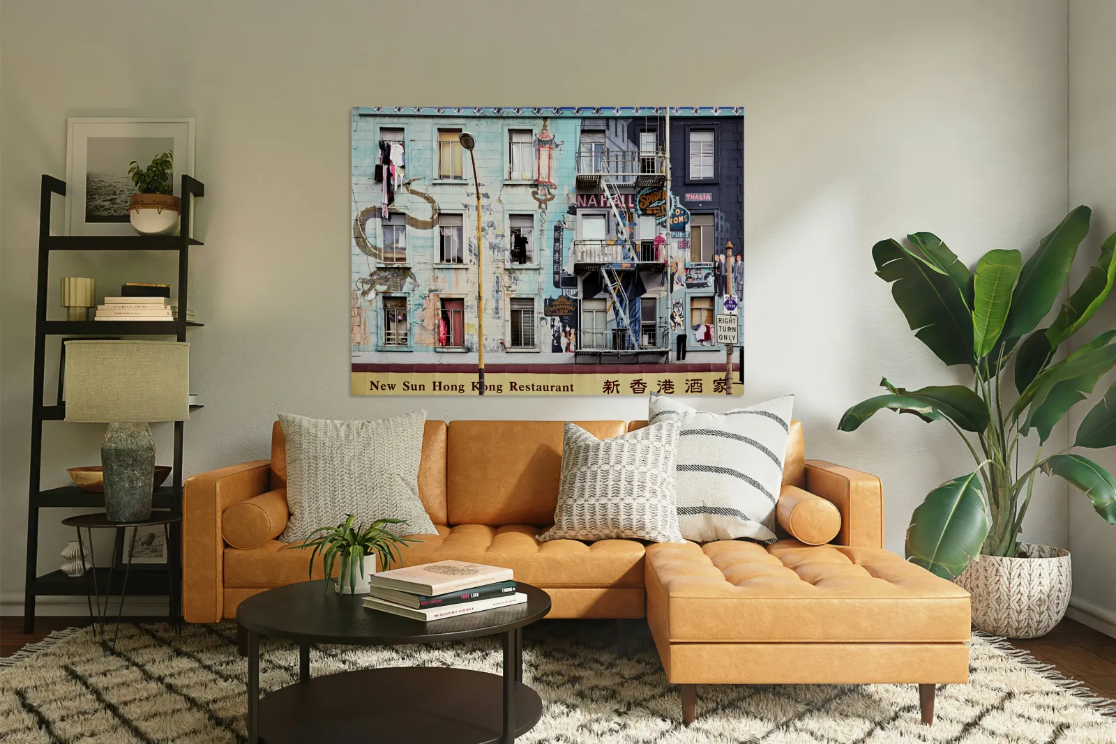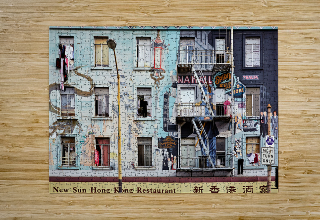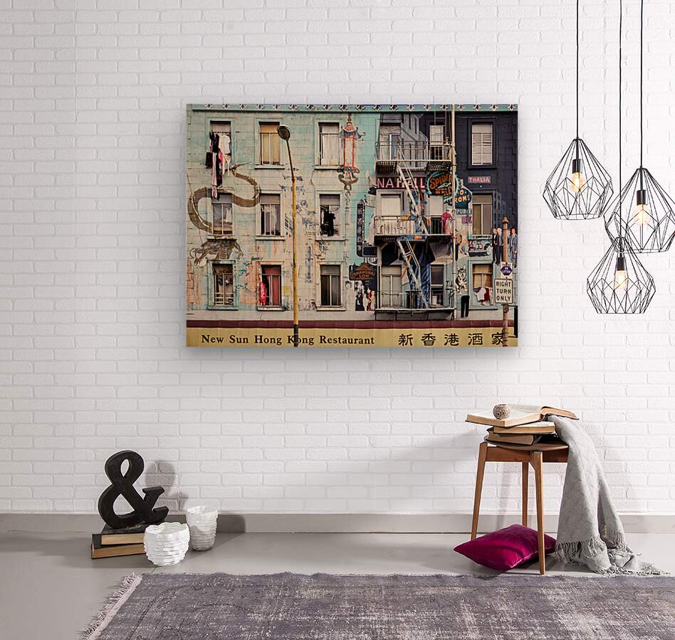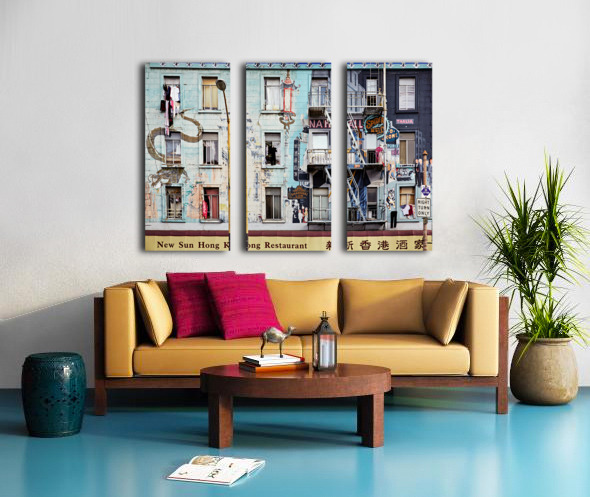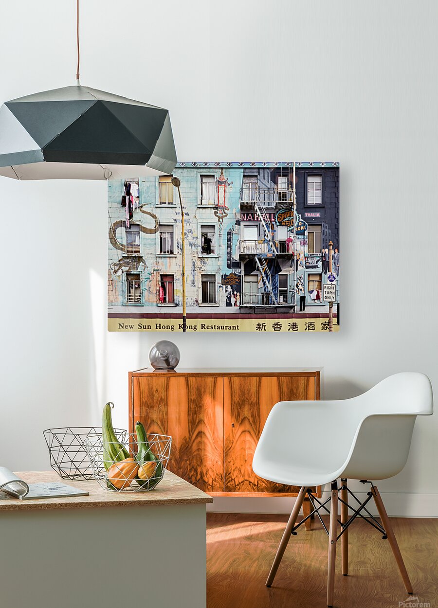 "Chinatowns vibrant murals and buildings" in a framed print.