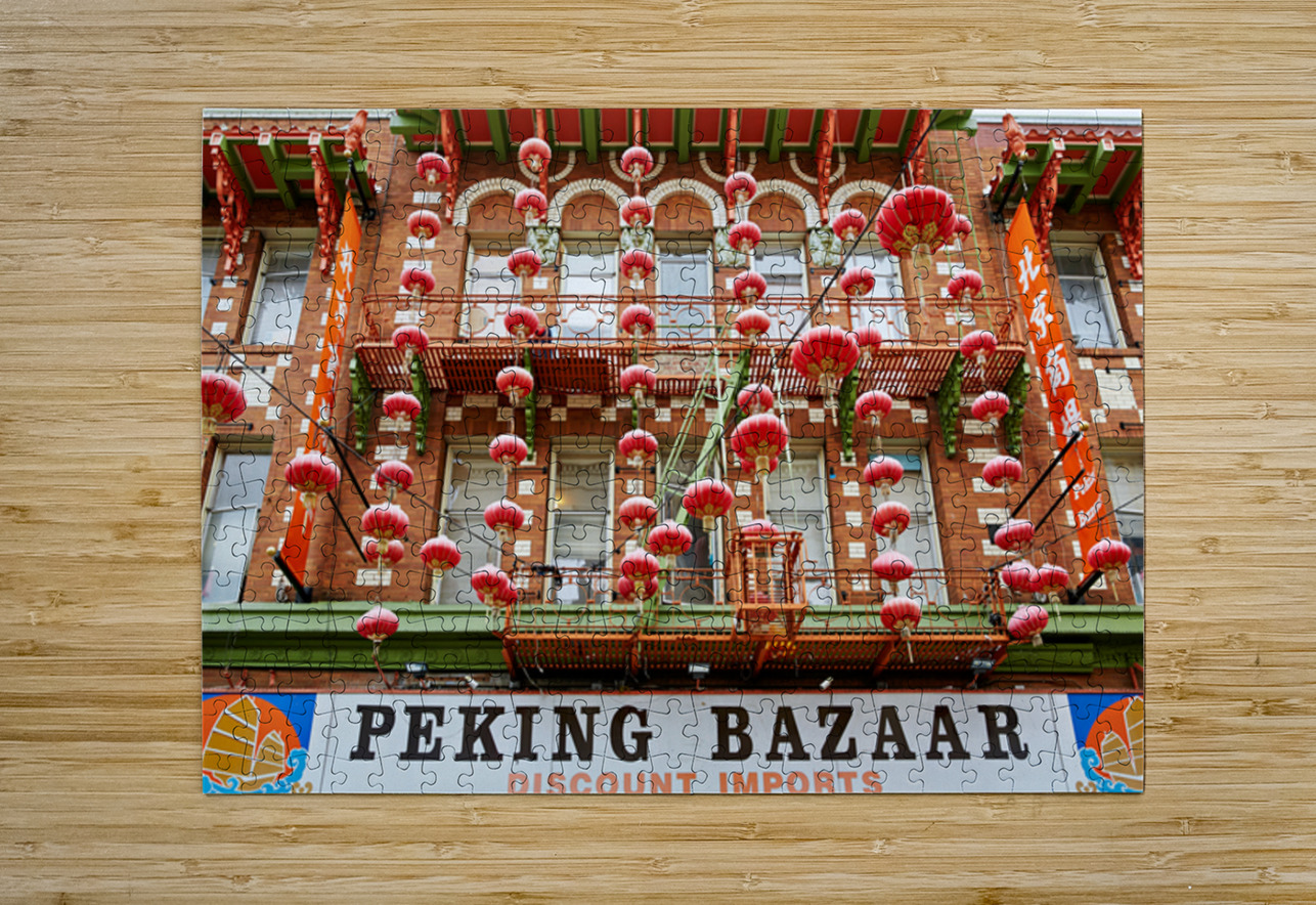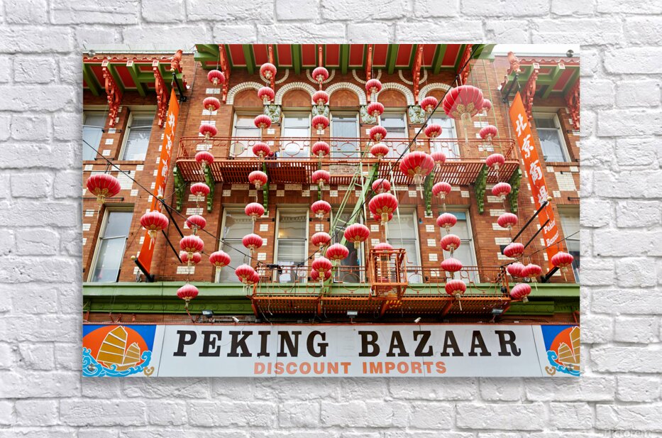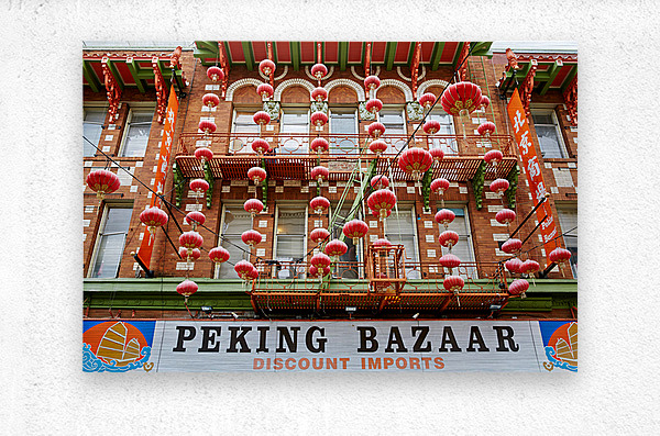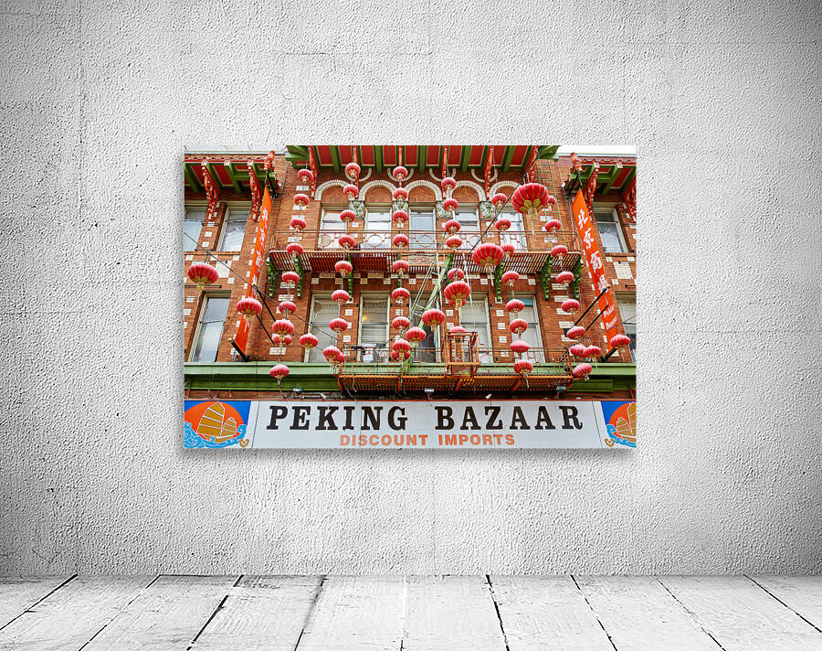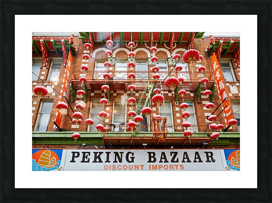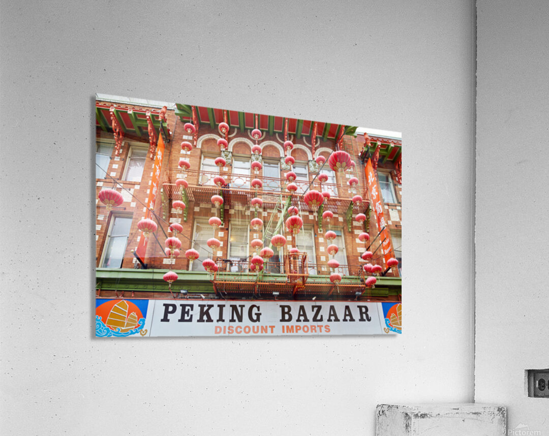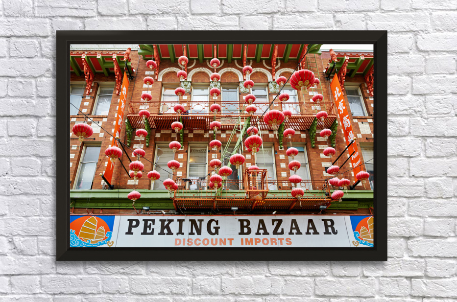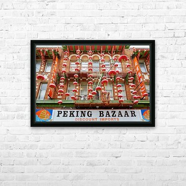 "Visit Peking Bazaar in Chinatown San Francisco today" in a framed print.