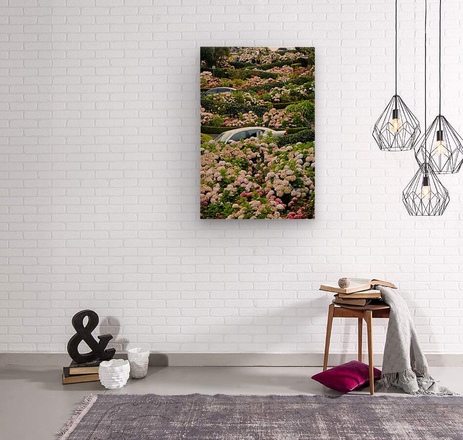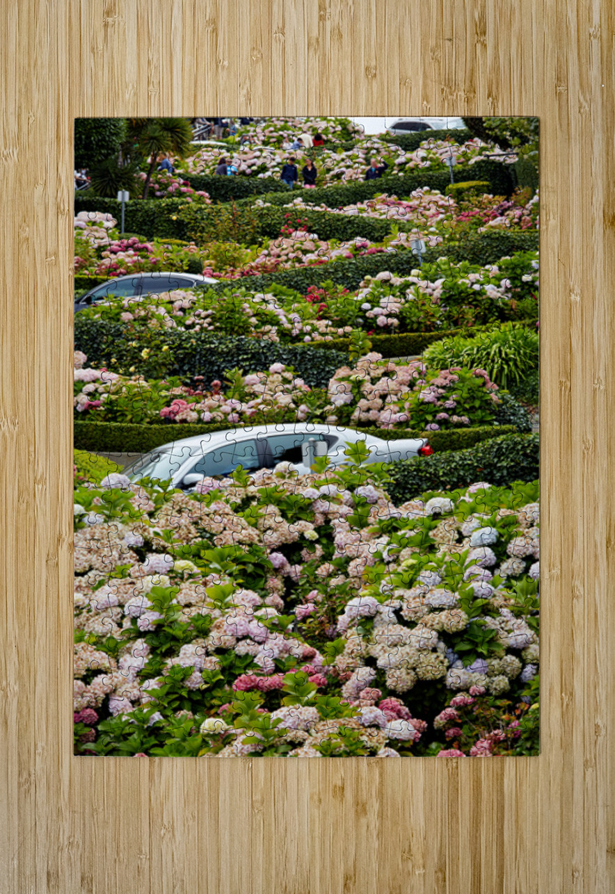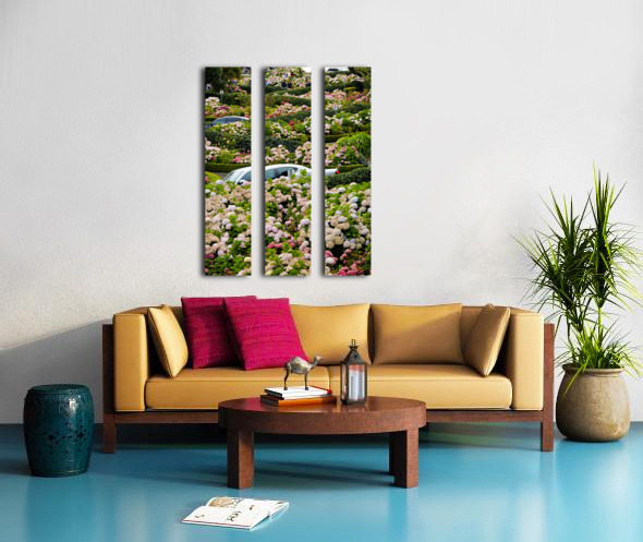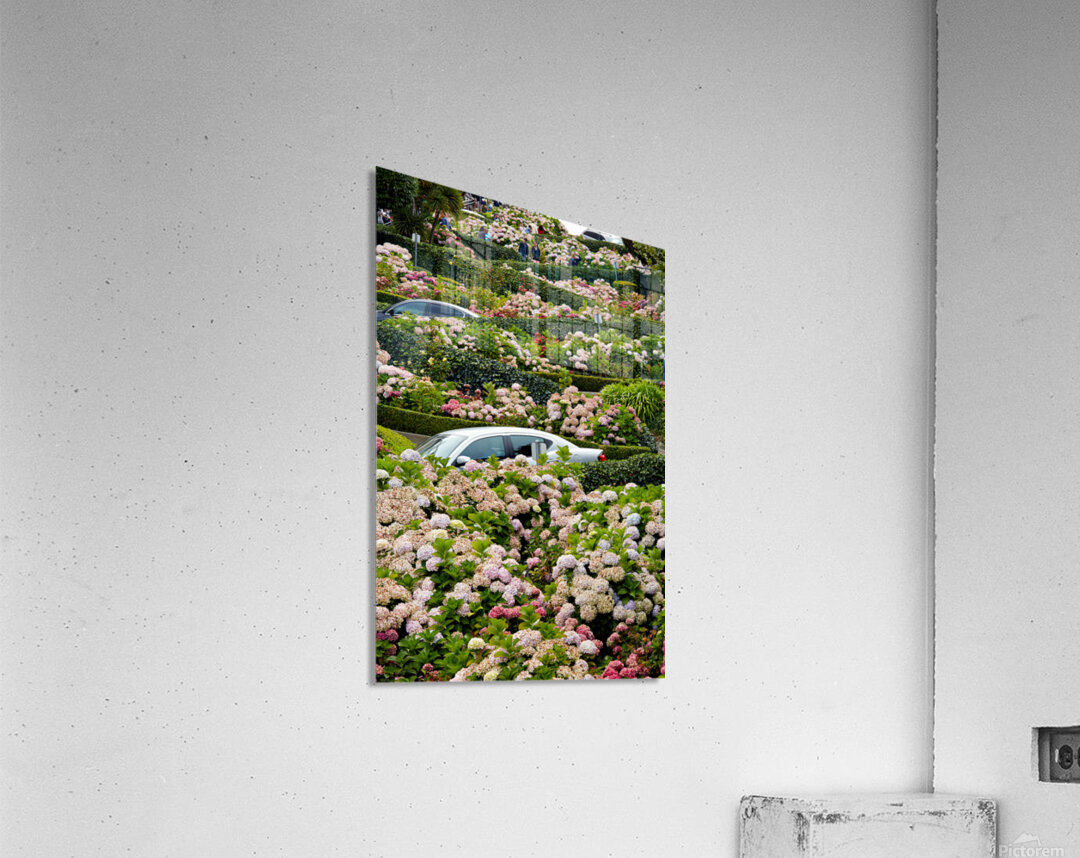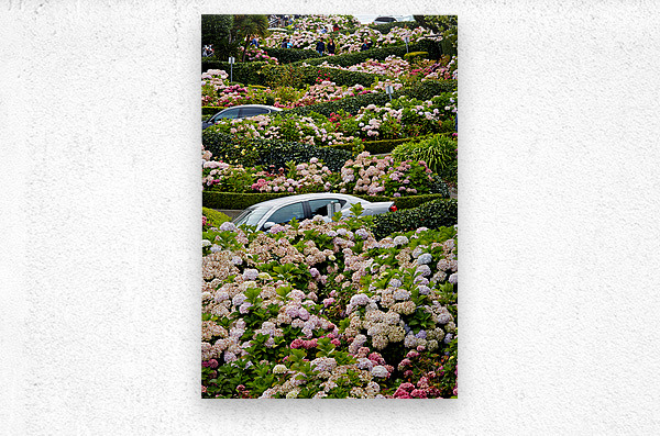 "Visitors stroll Lombard Streets winding paths" in a framed print.