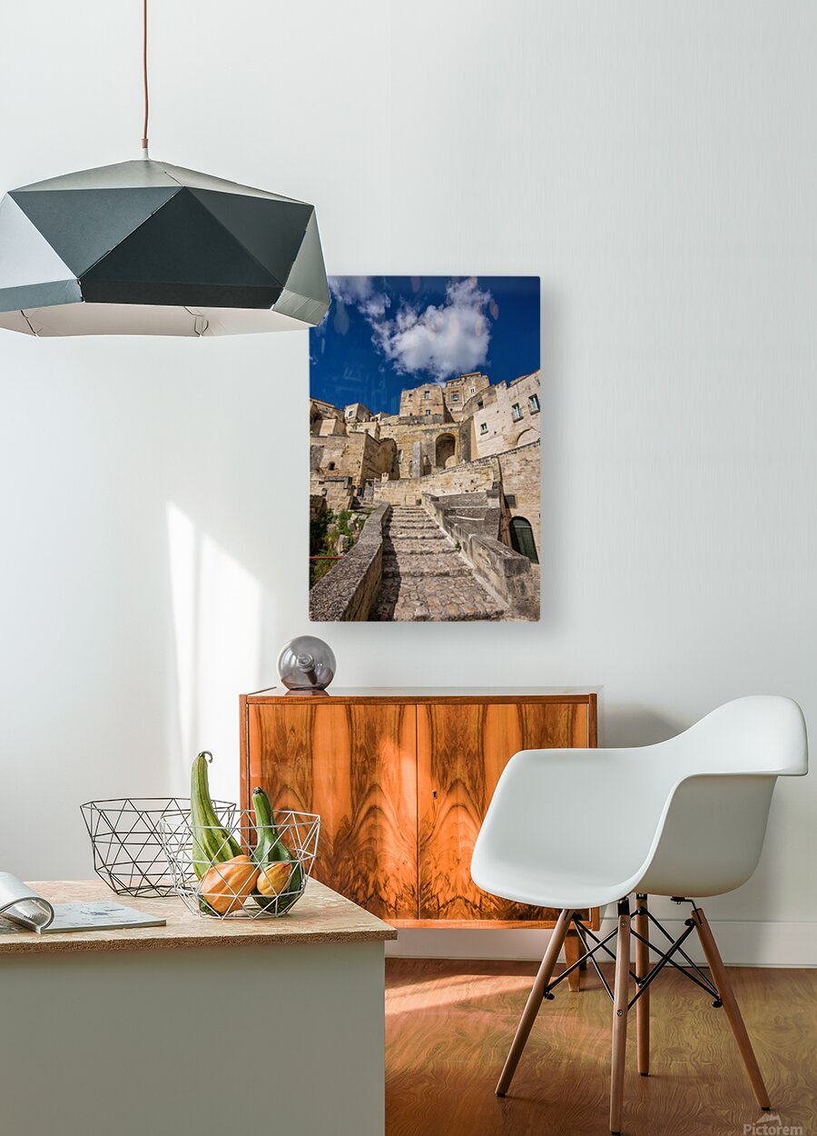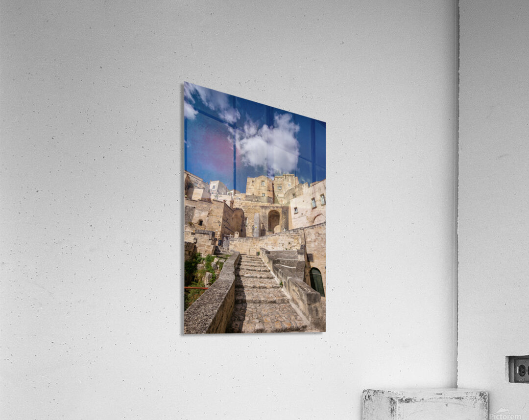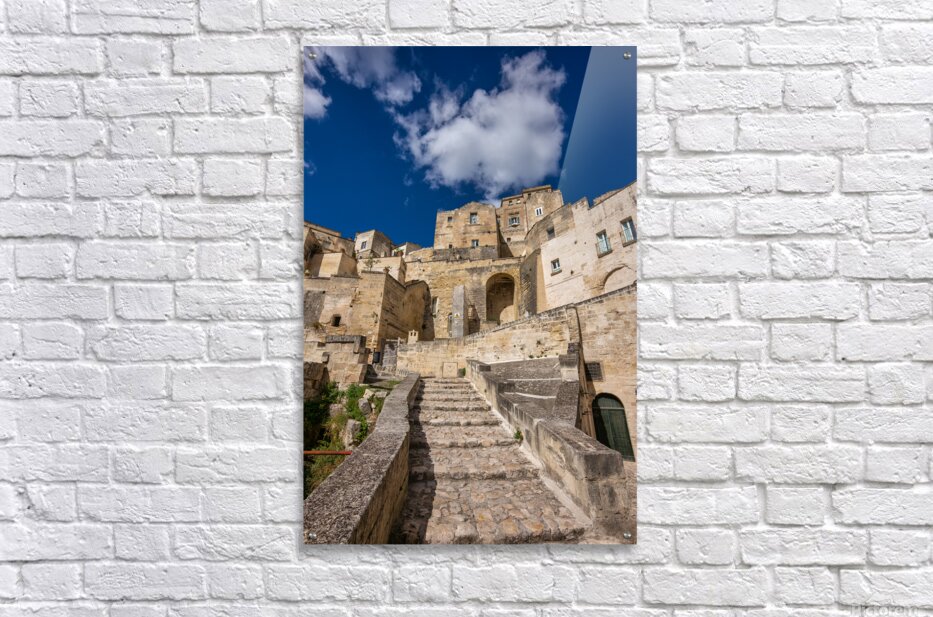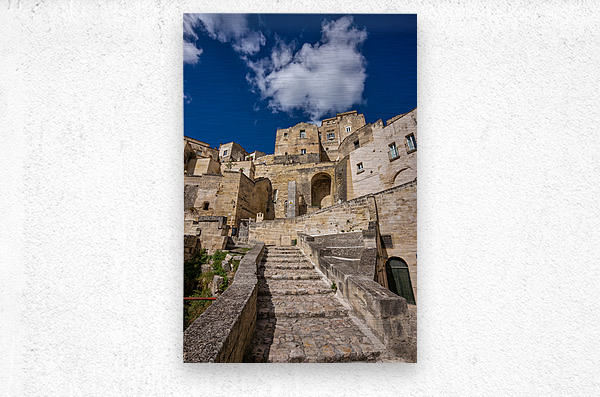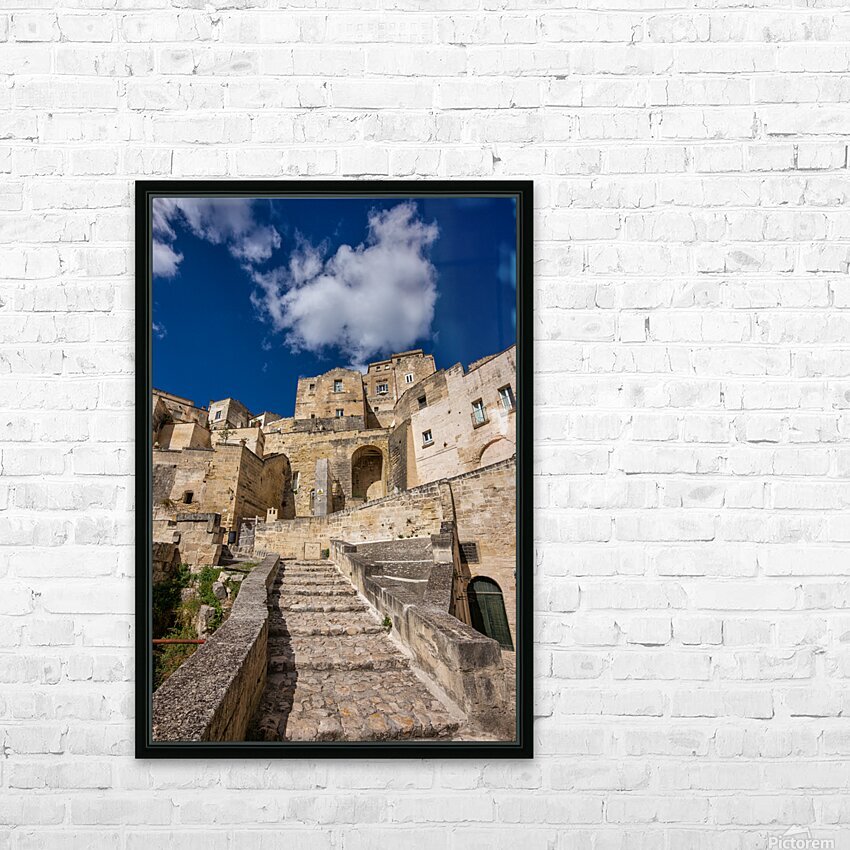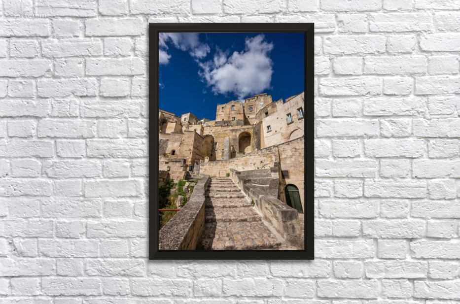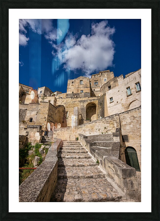 "Exploring the alleys of Matera in Basilicata Italy" in a framed print.