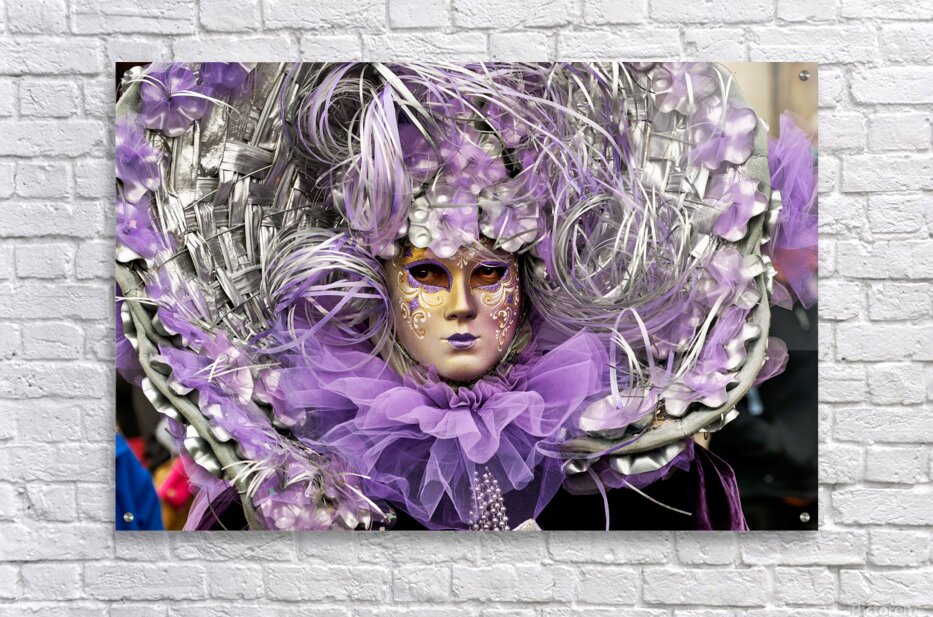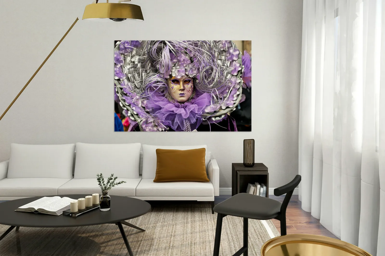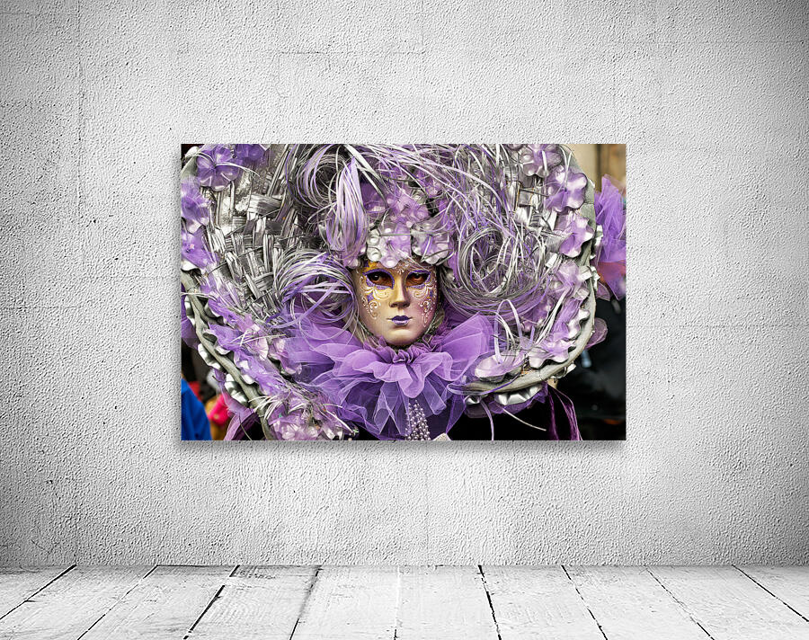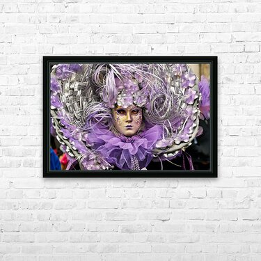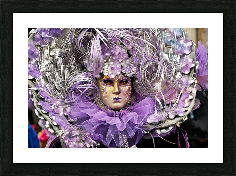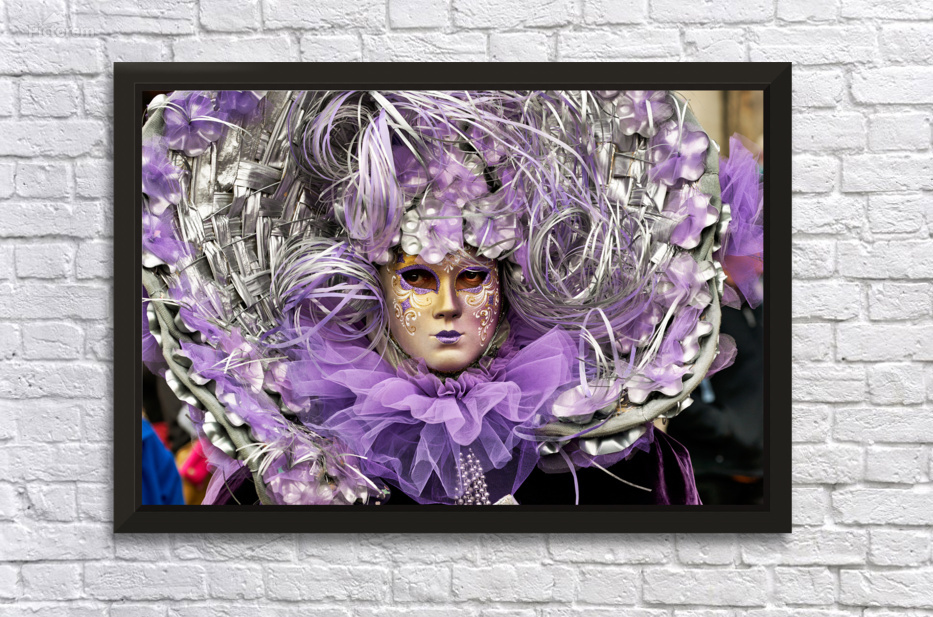 "Masked participant at Venice Carnival in Italy" in a framed print.